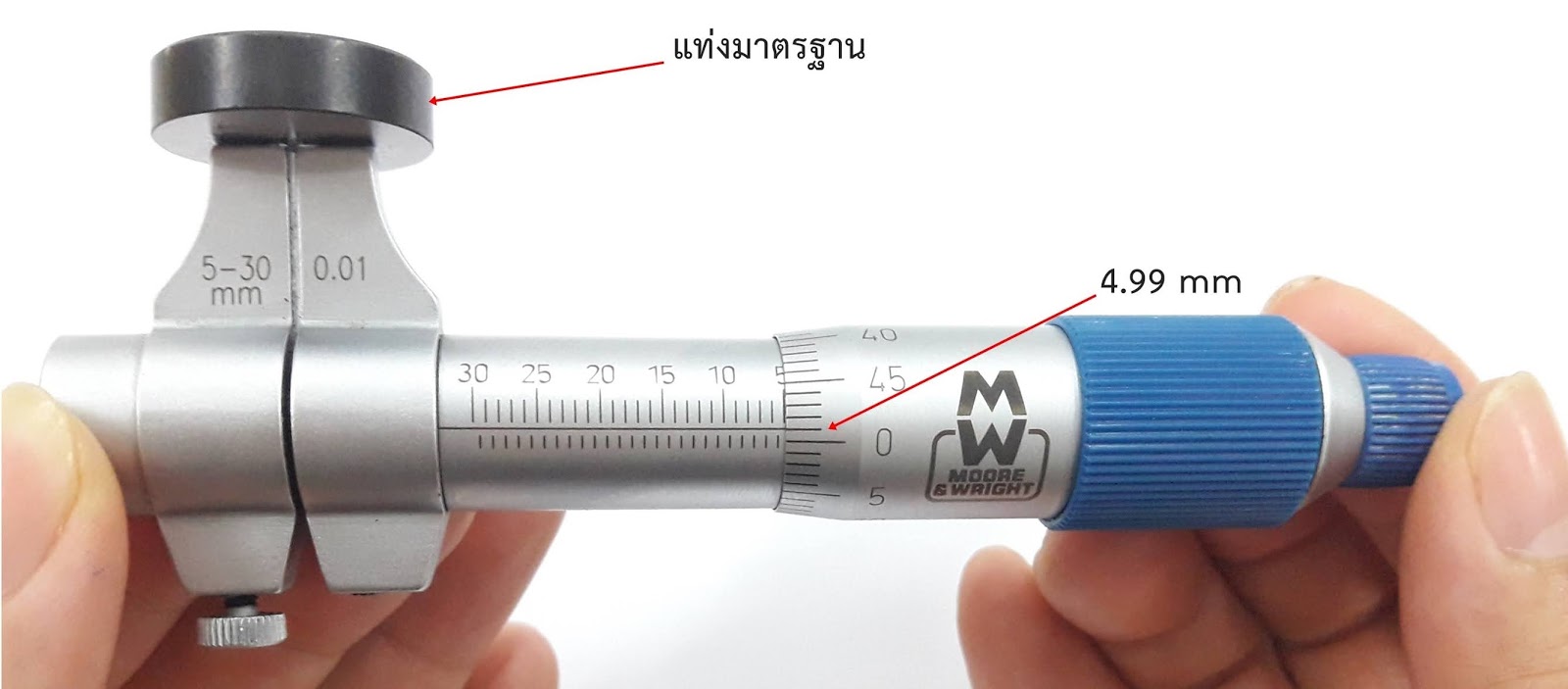 3.1.3 เมื่อปรับตั้งความเที่ยงตรงของไมโครมิเตอร์พร้อมใช้งานแล้ว จากนั้นจึงนำไมโครมิเตอร์ไปใช้ได้